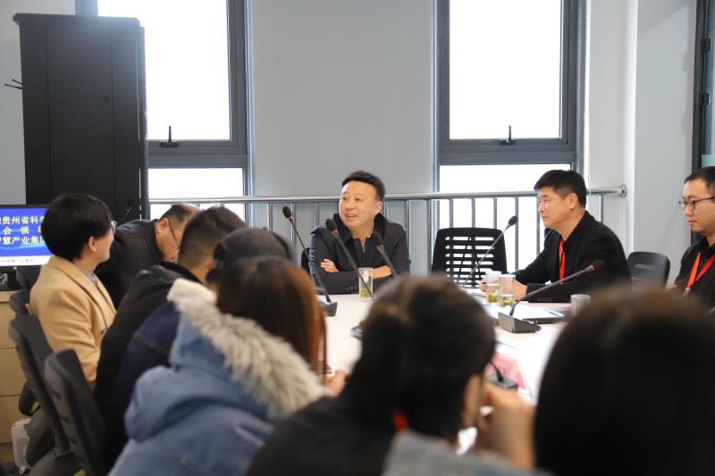 在貴州智慧產業集團,李明亮董事長與貴州智慧農業與農村發展研究院院長趙文教授針對農業、新能源等民生項目建設進行深入探討。
