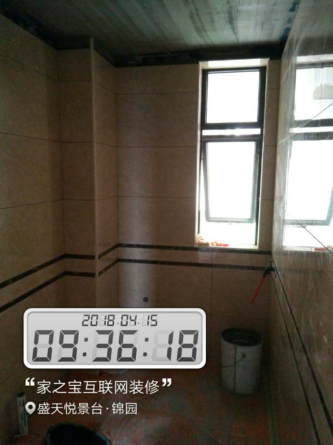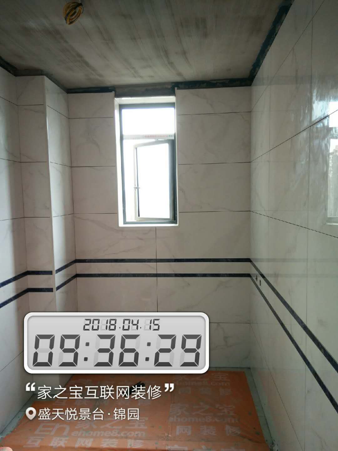 瓦工施工,平整對縫,鋪貼完畢即刻進行成品保護,鋪好地膜。