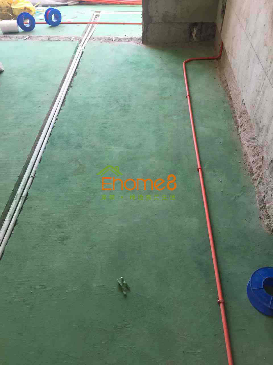 地面綠環地固的涂刷及水電材料進場