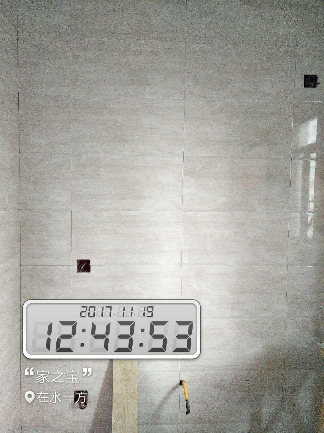 墻磚鋪貼,使用水平儀投射水平線,陽角處采用磨邊45°碰角工藝。