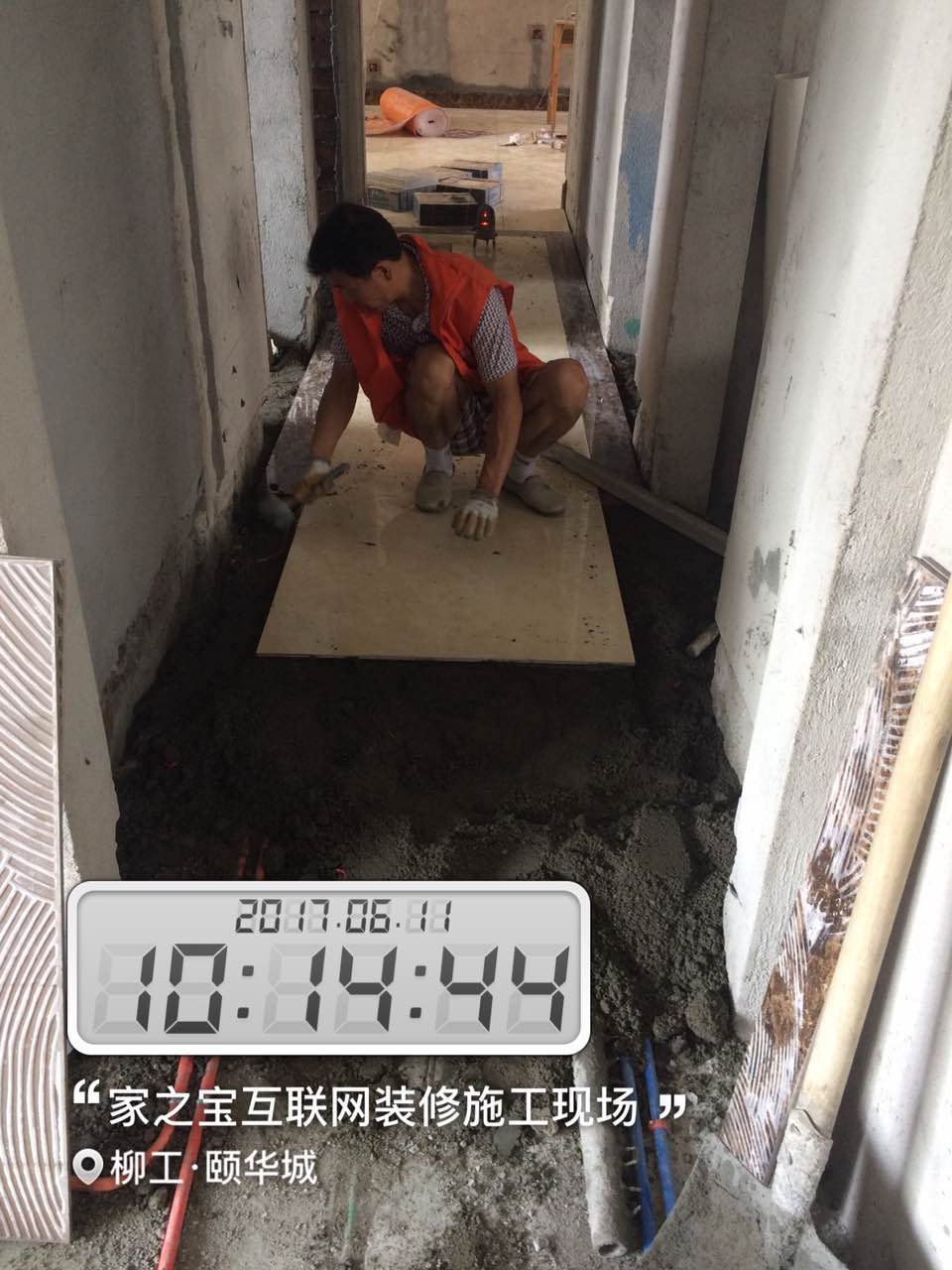 瓦工施工,平整對縫,鋪貼完畢即刻進行成品保護,鋪好地膜